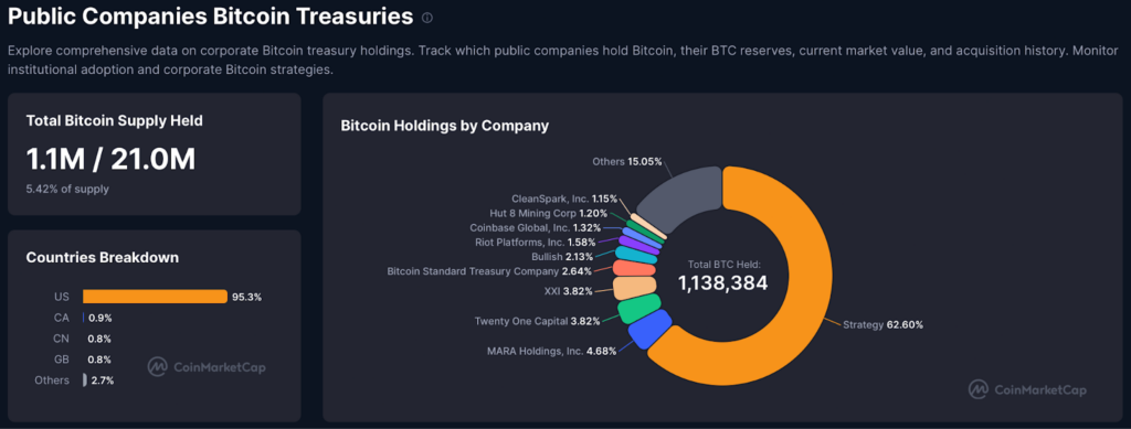 At the same time, Public Bitcoin treasury companies entering the fray have added a new structural layer to Bitcoin’s supply dynamics. They now collectively own 5.42% of the total supply.