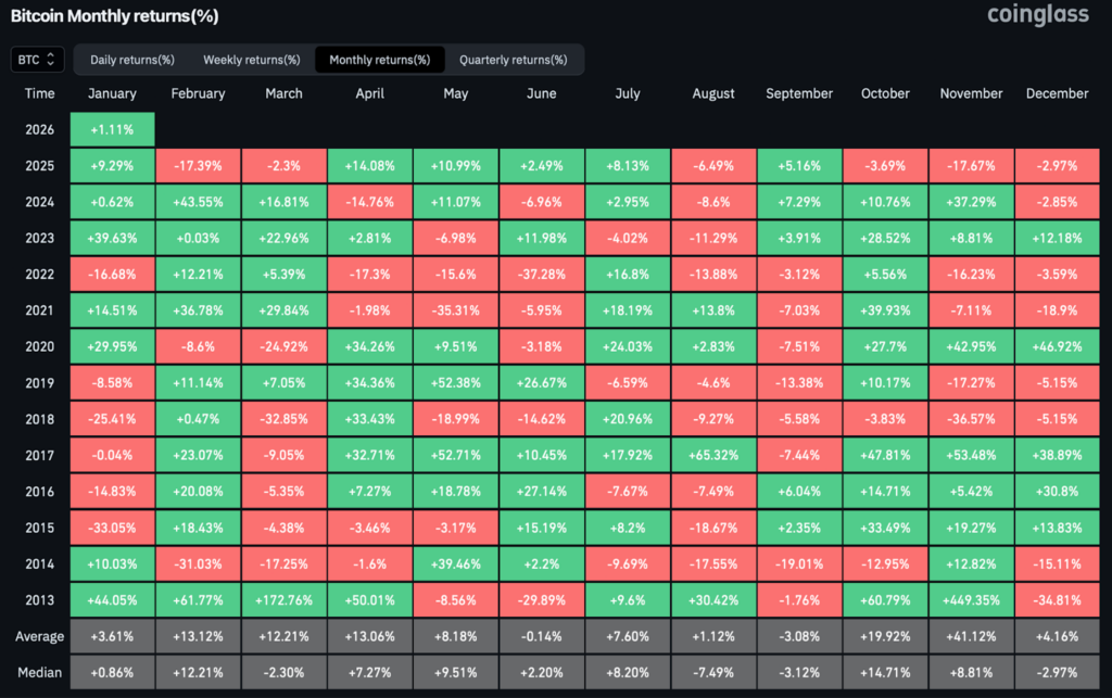 What stands out, however, is how rarely Bitcoin has printed four consecutive monthly red candles. Notably, the last time this happened in 2018, Bitcoin did not end its streak of red months with the fourth. Instead, Bitcoin went on to see a further ~20% decline with two more red months. A similar setup played out in 2015, where losses ultimately approached close to 60% after the four month red streak.