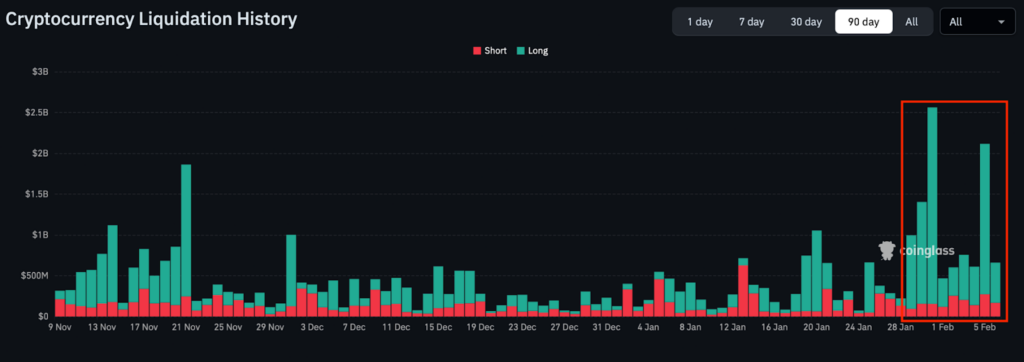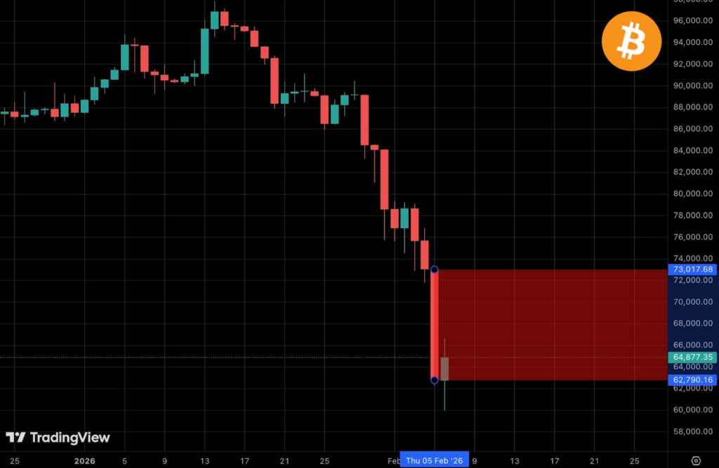 In the past 24 hours alone, $2.60 billion worth of positions were liquidated, placing this among the ten liquidation events the market has ever seen. However, if you look at the liquidations since January 29th, nearly $10 billion has been erased, making this past week one of the most aggressive deleveraging flushes the market has witnessed. This explains why Bitcoin accelerated to the downside after breaking the first key level of $80.5K and then the April 2025 range low of $74.5K.