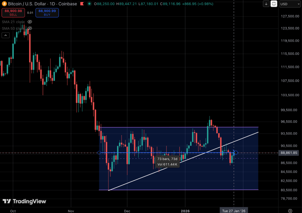 Bitcoin has been compressed within a clear range between $80.5K and $95K for 73 days now. The ranging market has also been characterized by unusually low volatility, especially when you compare to traditionally less volatile assets like gold and silver.